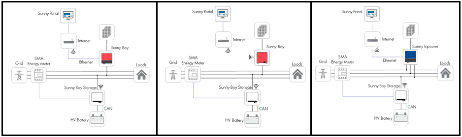 - Sunny Boy or Sunny Tripower with Webconnect (maximum of 3 PV inverters)