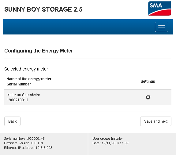 Export limitation for the system using the Sunny Boy Storage can be setup during the initial configuration of this inverter. Follow the normal setup procedure via the web user interface. In step 4 of the inverter configuration, the energy meter will show up connected to the network. You will need to select the SMA Energy Meter from which the generation & consumption data will be obtained.